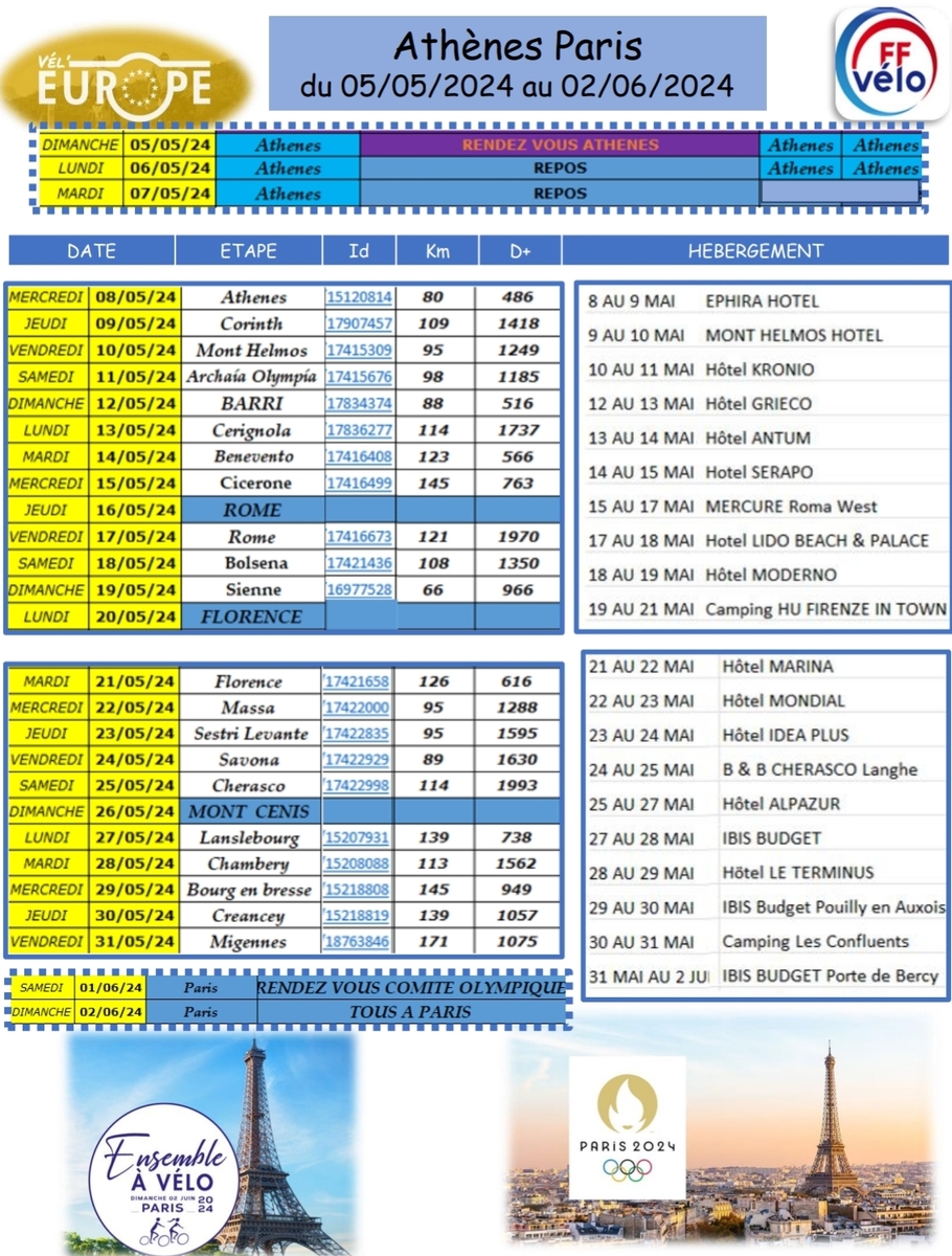 Vel’Europe d’ATHENES à PARIS effectué par Colette
